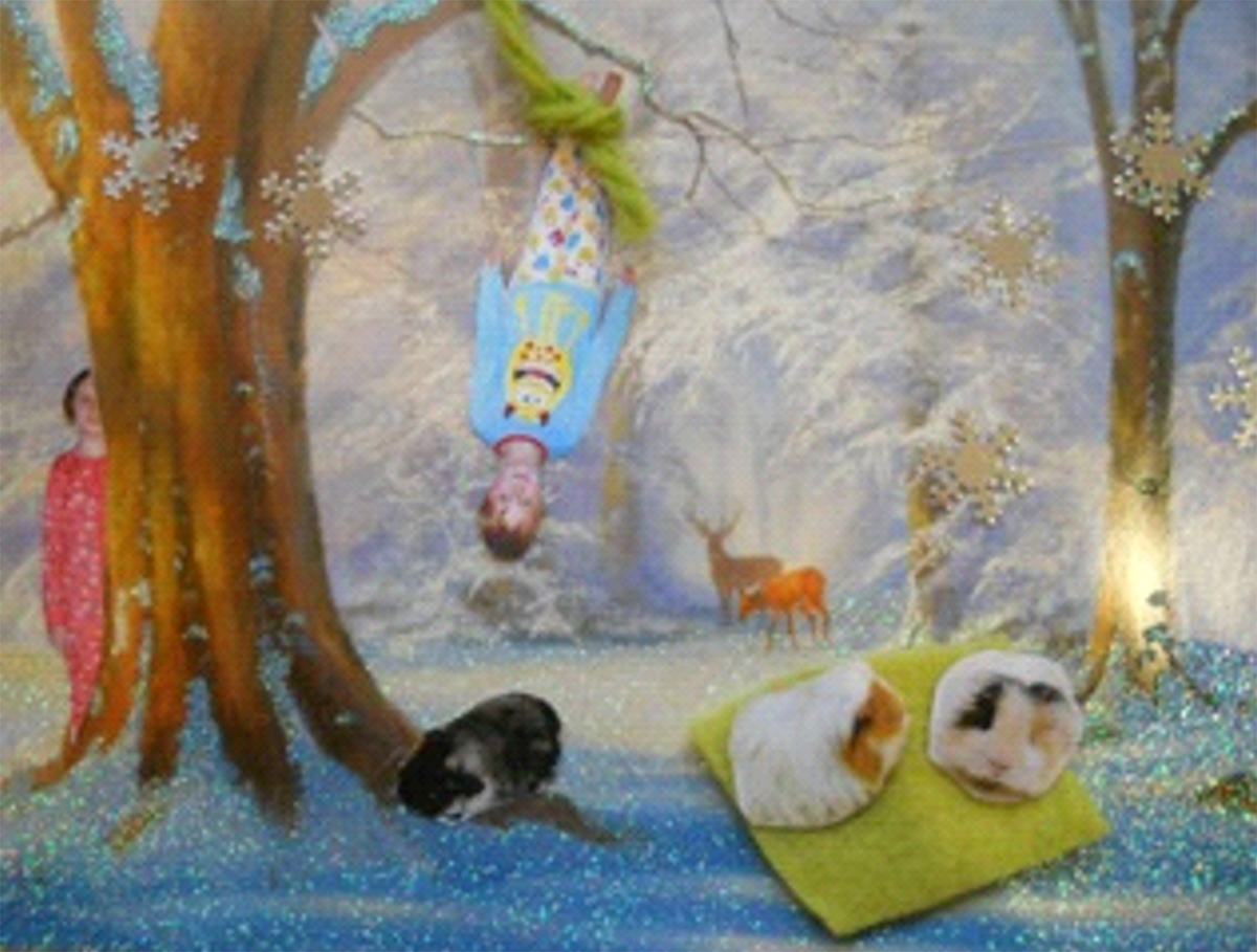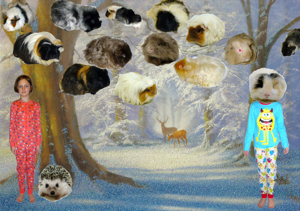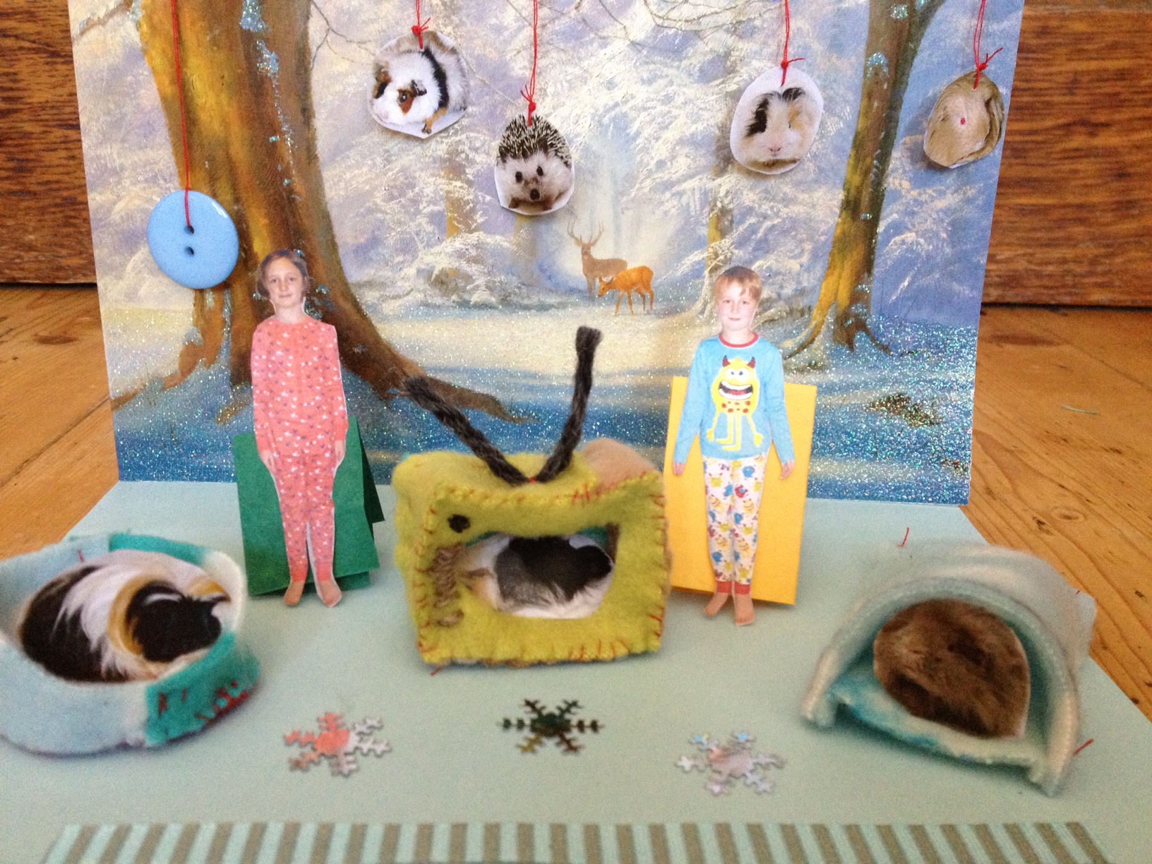 Otto (star) Esmé (star) Lotta (angel) Iris (angel) Alice (angel) Jemima Raincloud and babies (shepherd and flock) Pablo and Hebe's babies (the baby jesus's) Pablo (joseph) Hebe (mary) Hugo (wise guinea pig) Albie (wise guinea pig) Indigo (wise guinea pig) Pixie (star of bethlehem)